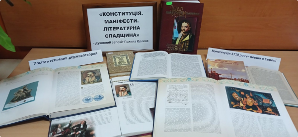 Особливу увагу приділено книзі Пилипа Орлика «Конституція, маніфести та літературна спадщина». Унікальність Конституції Пилипа Орлика полягає в її прогресивних положеннях, спрямованих на регулювання основних питань управління державою після здобуття незалежності. Документ складається з преамбули та 16 статей, що відображають ключові ідеї політичного устрою.