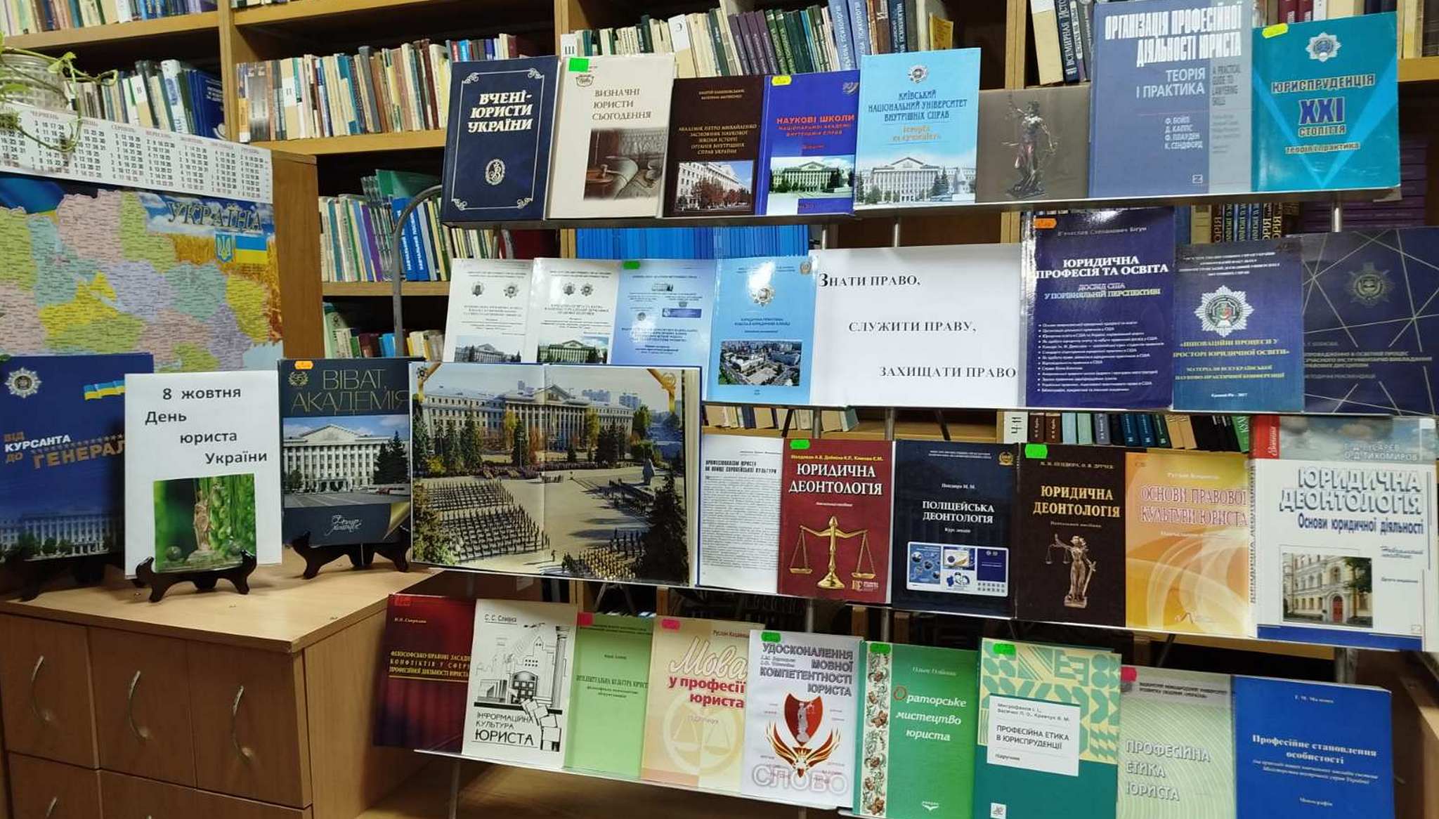 У центральному корпусі академії загальна бібліотека презентувала виставку під назвою "Знати право. Служити праву. Захищати право". Експозиція включала книги, присвячені професійній етиці юриста, формуванню правової культури, тенденціям розвитку юриспруденції у XXI столітті, а також матеріали про видатних юристів сучасності. Виставка стала джерелом корисної інформації для курсантів, студентів-правників, викладачів та всіх зацікавлених у правових аспектах суспільного життя.