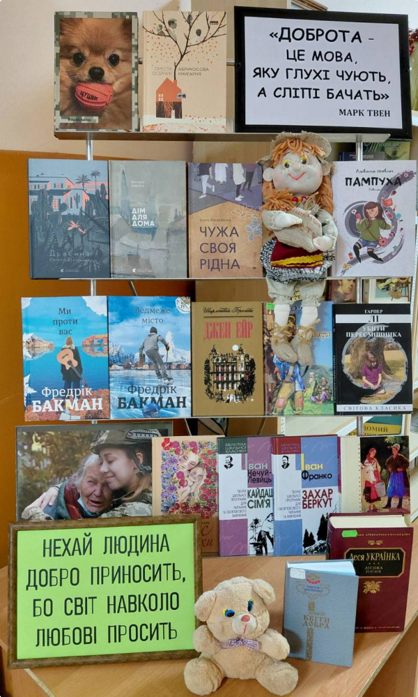 До Всесвітнього дня доброти загальна бібліотека в навчально-науковому інституті поліцейської діяльності НАВС організувала унікальну книжкову виставку-інсталяцію під назвою «Доброта – це мова, яку глухі чують, а сліпі бачать». Ця подія мала на меті привернути увагу до важливості доброти у нашому житті та ознайомити відвідувачів із літературними творами, що висвітлюють цю тему.