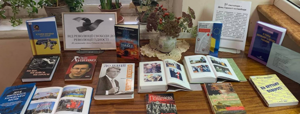 У фойє загальної бібліотеки центрального корпусу Національної академії внутрішніх справ розгорнуто тематичну книжкову виставку, присвячену цій знаковій даті. Експозиція включає монографії, фотоальбоми, хронологічні довідники та літописи очевидців, які висвітлюють події Євромайдану та Революції Гідності. Ці видання розкривають глибинні зміни в суспільстві, формування нової української нації та боротьбу за свободу.