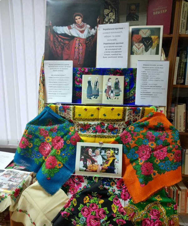 Окрім книжкових експозицій, відвідувачі бібліотеки мали змогу ознайомитися з унікальними виставками жіночих хусток із власної колекції працівників бібліотеки. Ця експозиція демонструвала різноманіття кольорів, орнаментів і технік виготовлення хусток, що відображають багатство регіональних особливостей України.