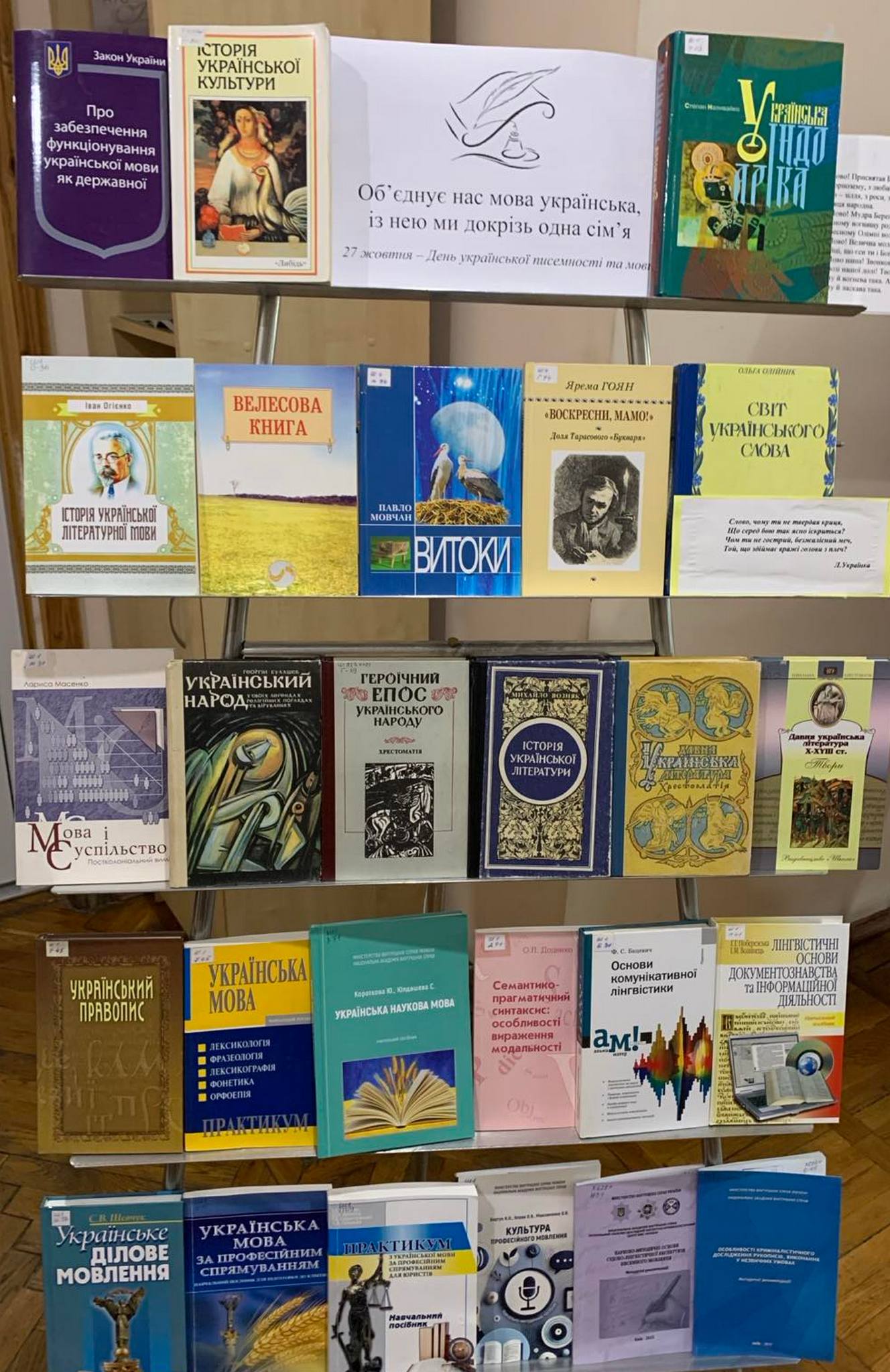 До Дня української писемності та мови загальна бібліотека НАВС організувала серію тематичних виставок, присвячених історії та розвитку української мови. У їх рамках представлено матеріали, що висвітлюють становлення мови в умовах численних заборон та утисків, а також її роль у сучасному суспільстві.